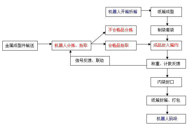 工業機器人應用技術顧名思義,是在以工業機器人為載體的前提下,自主研究、開發機器人在工業領域具體應用的實用型技術。力馬包裝主旨打造工業機器人在包裝、物流行業的技術開發、推廣應用。
